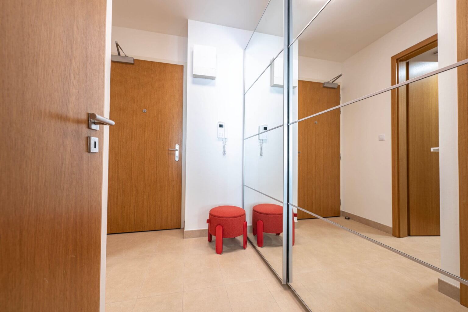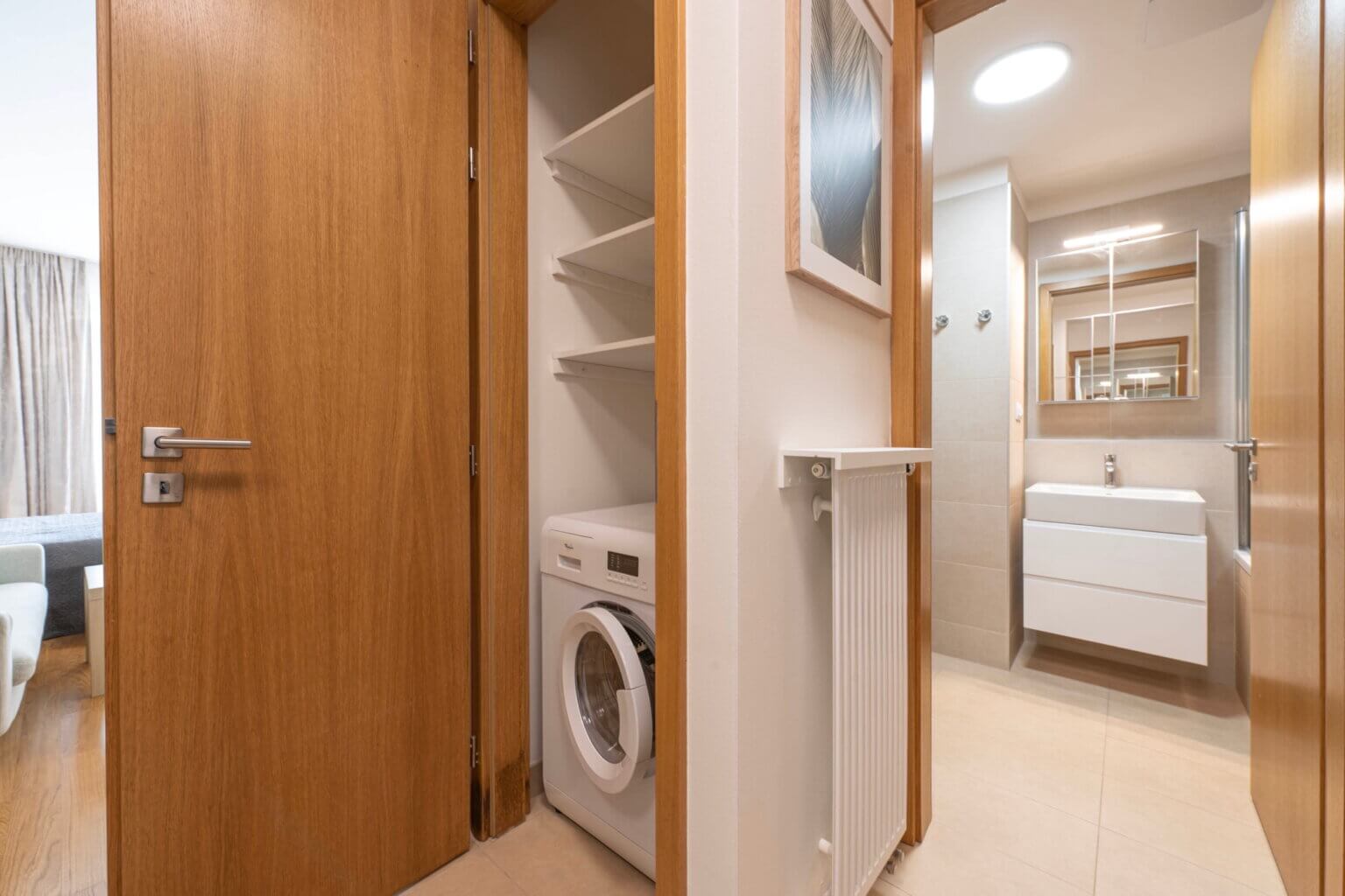 Komora poskytuje úložné prostory a také pračku. Na předsíni je praktická a velká skříň.