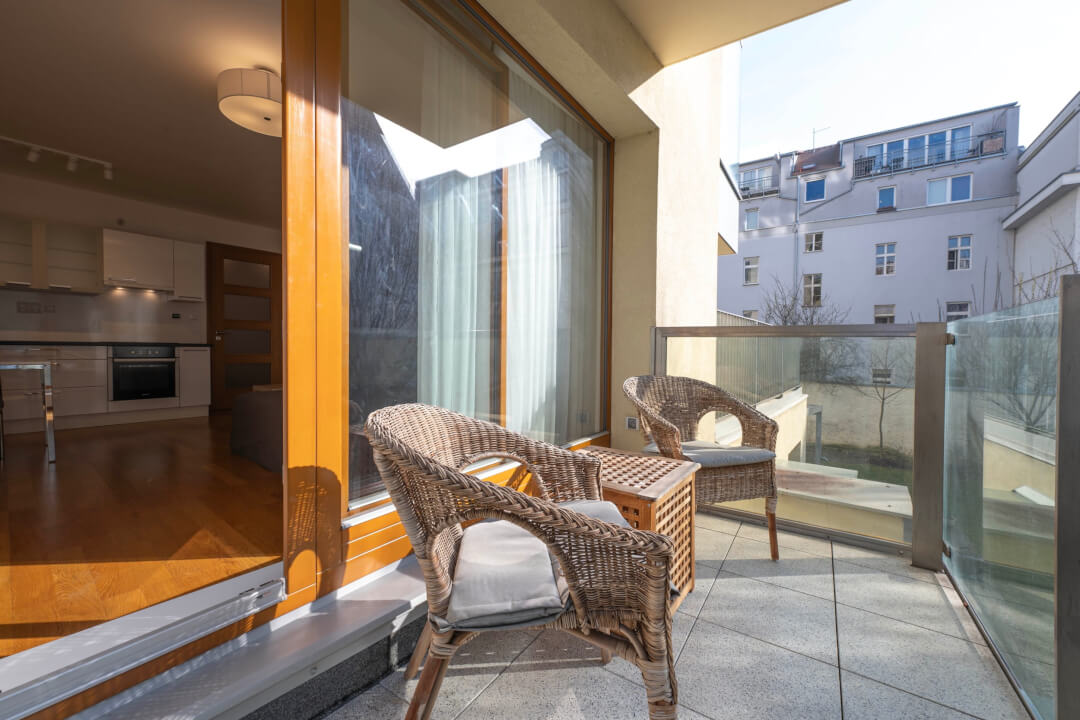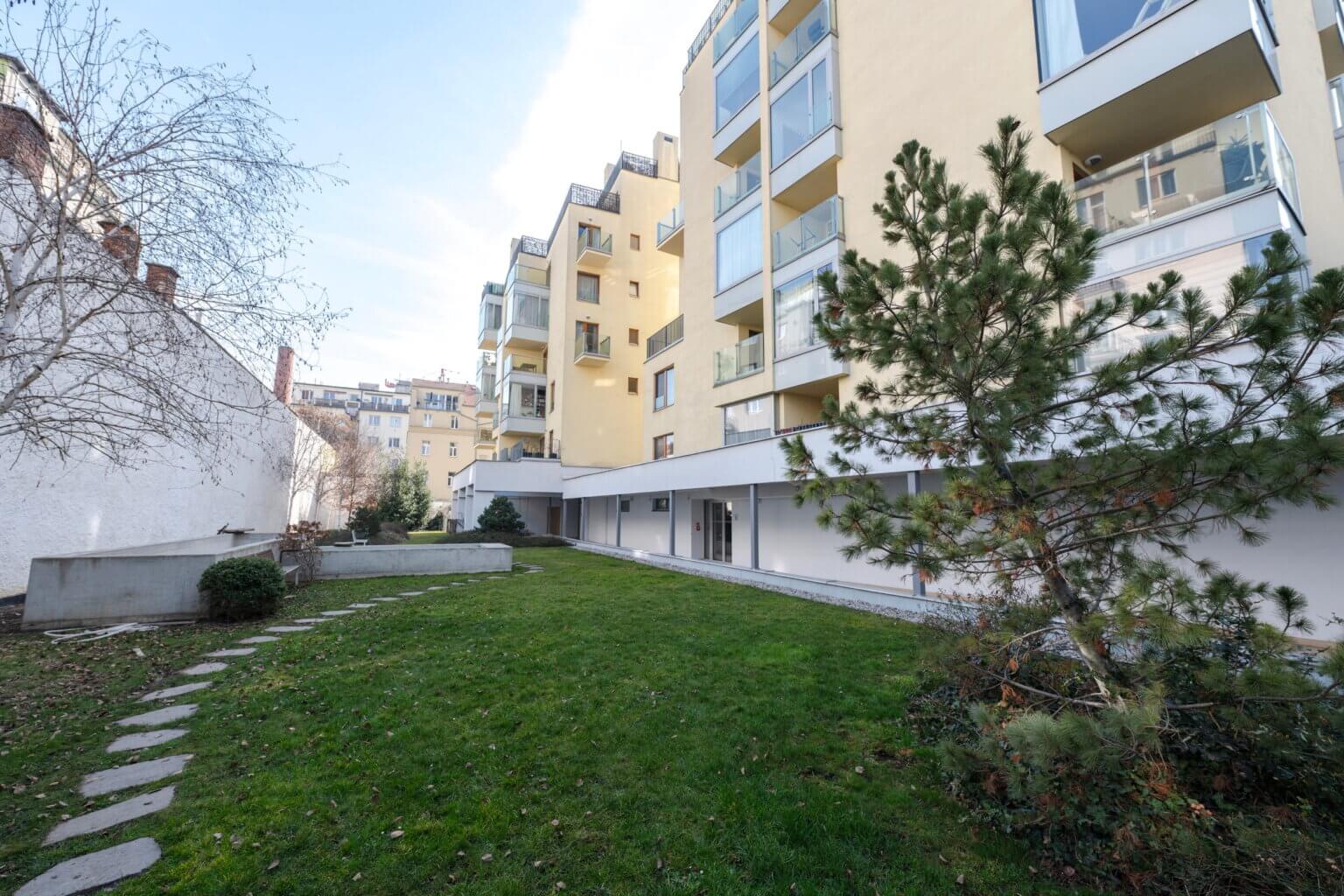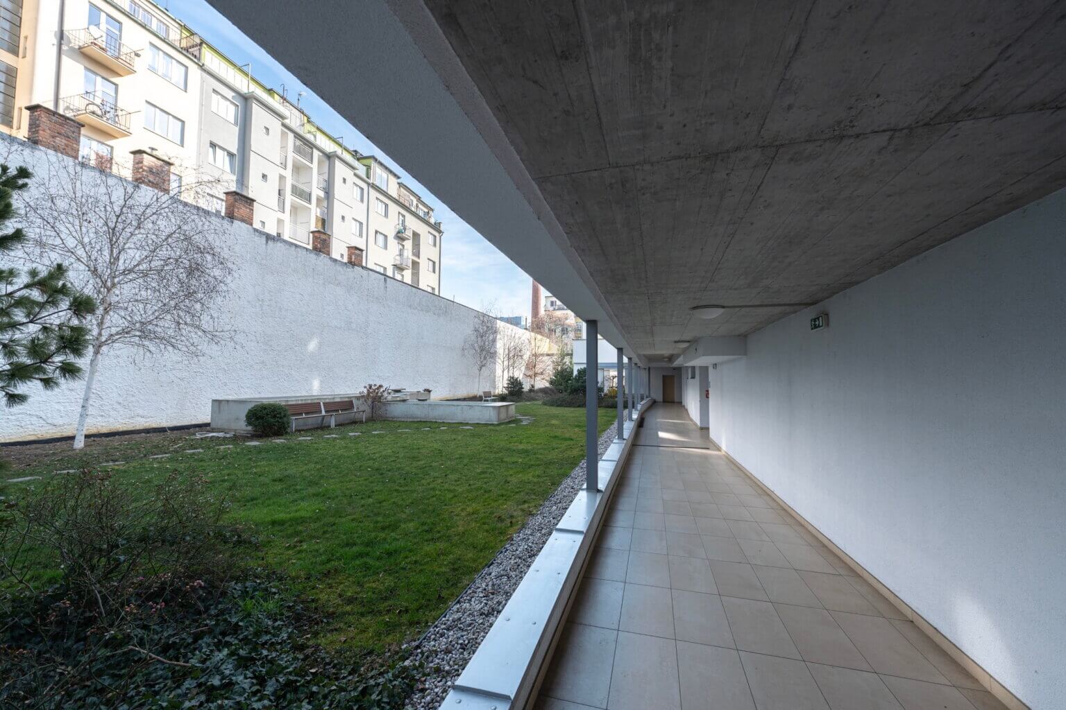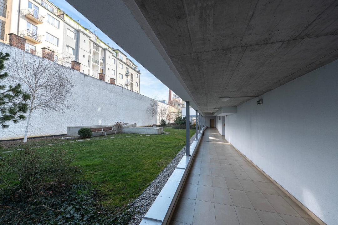 Byt je situovaný do klidného vnitrobloku kde v rámci domu je přístupná zahrada na posezení.
