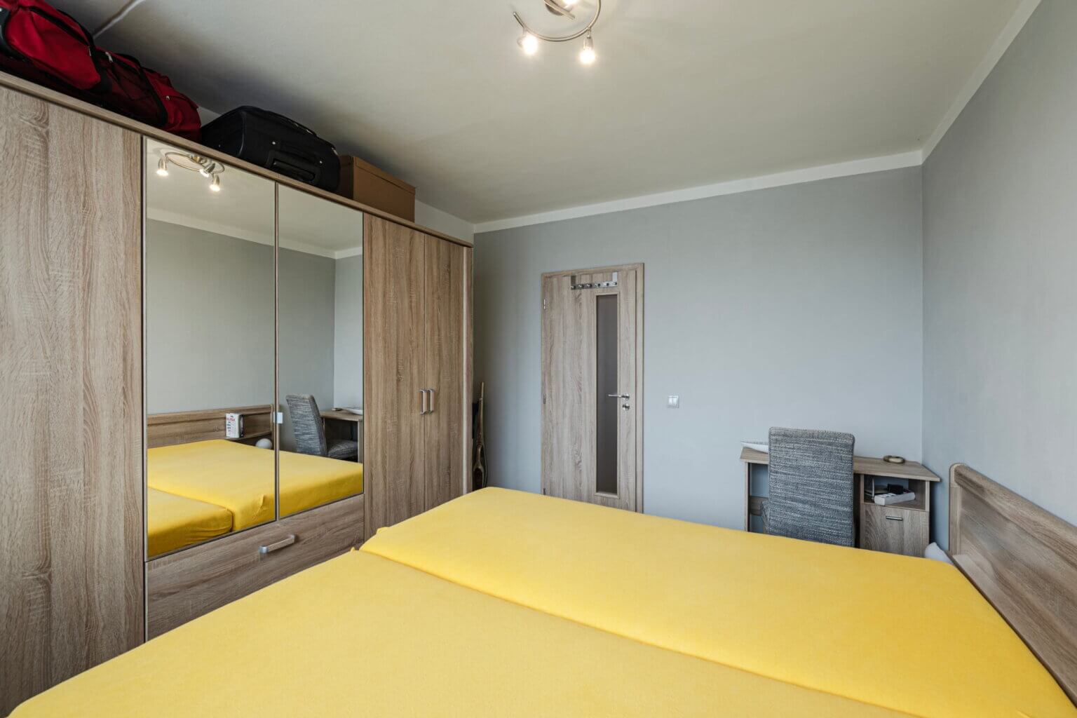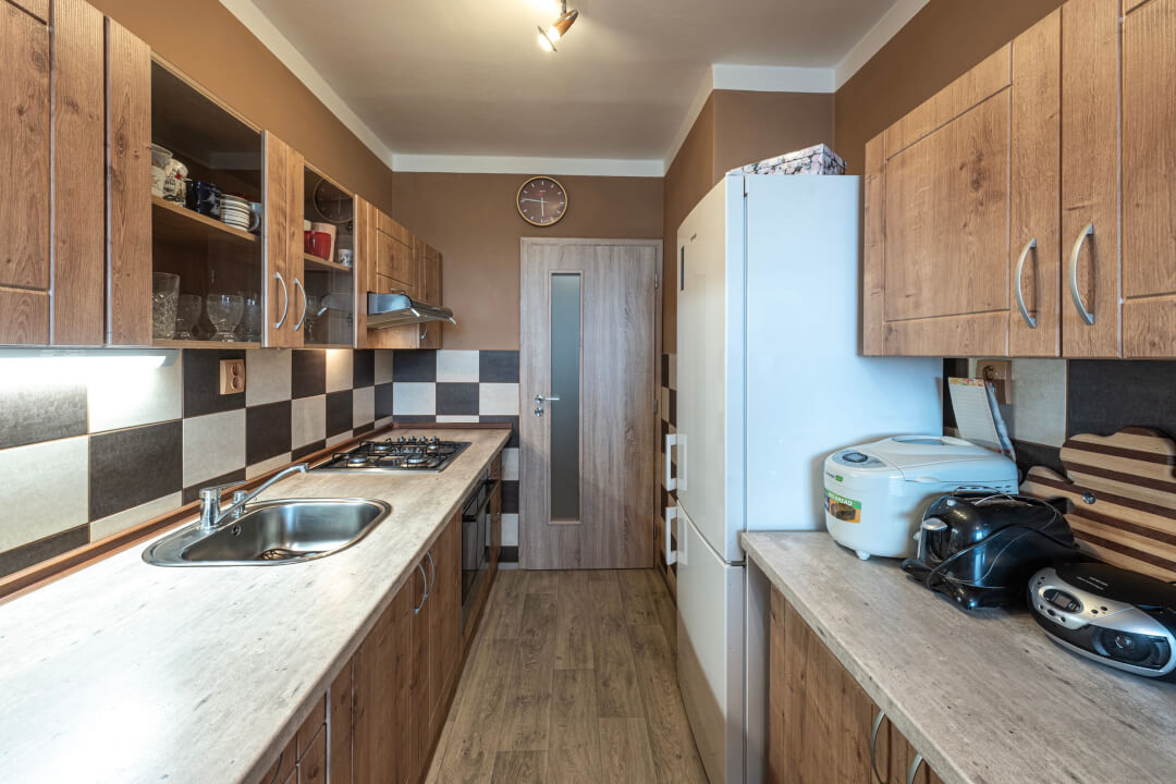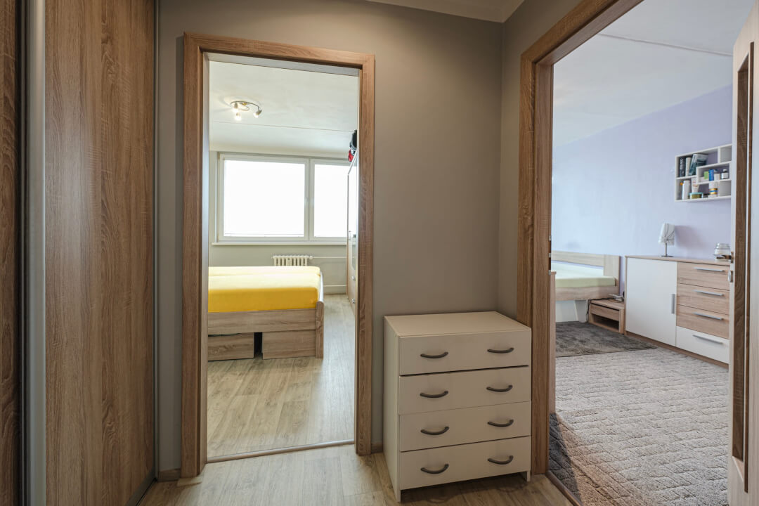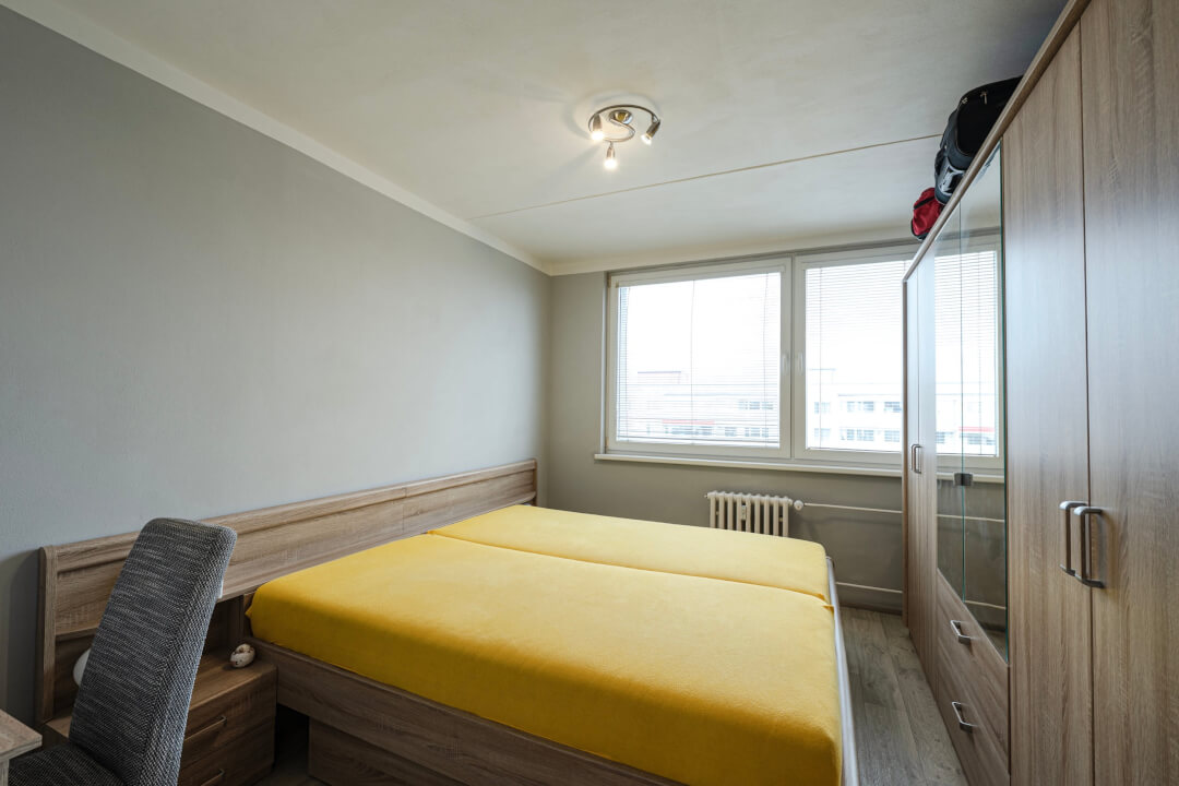 Prostorný obývací pokoj (19.5m2) se vstupem na prostornou lodžii s posuvným zasklením, samostatnou kuchyň (11m2) vybavenu el. troubou, plynovou varnou deskou, myčkou, lednicí s mrazákem. Obě ložnice mají východní orientaci. Koupelna má vanu dále umyvadlo, přívod na pračku. Toaleta je samostatná. V bytě je vestavěná skříň u vstupu a také vestavěný úložný prostor.