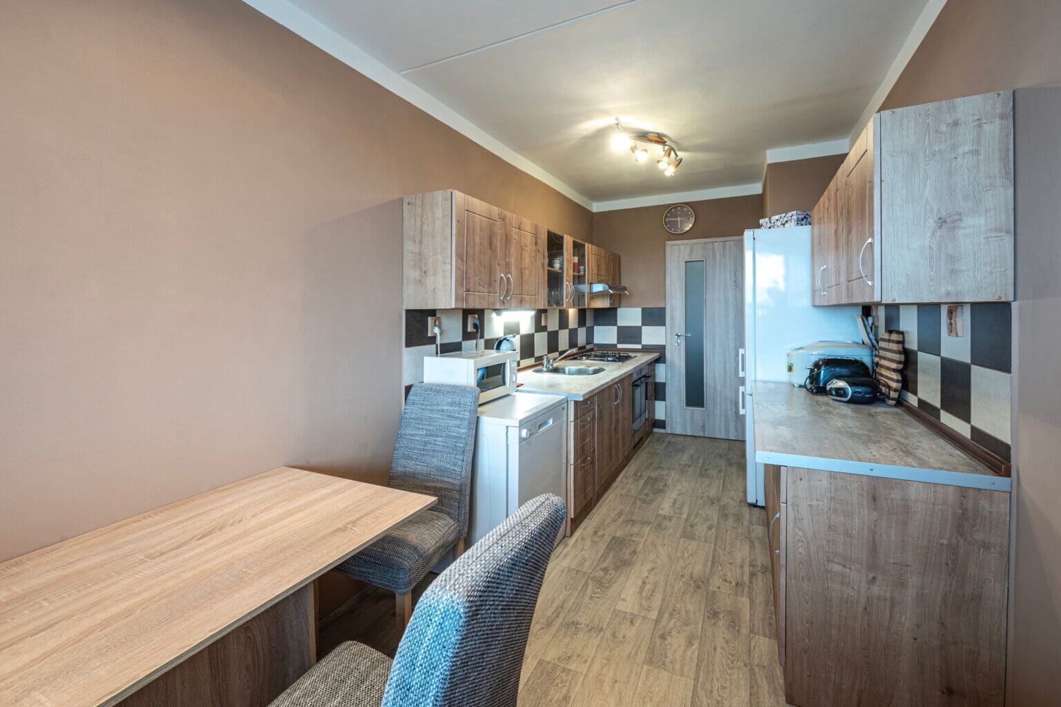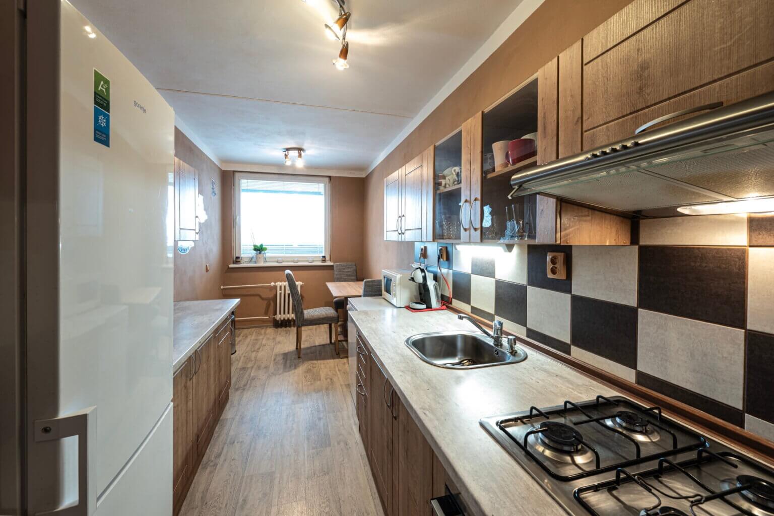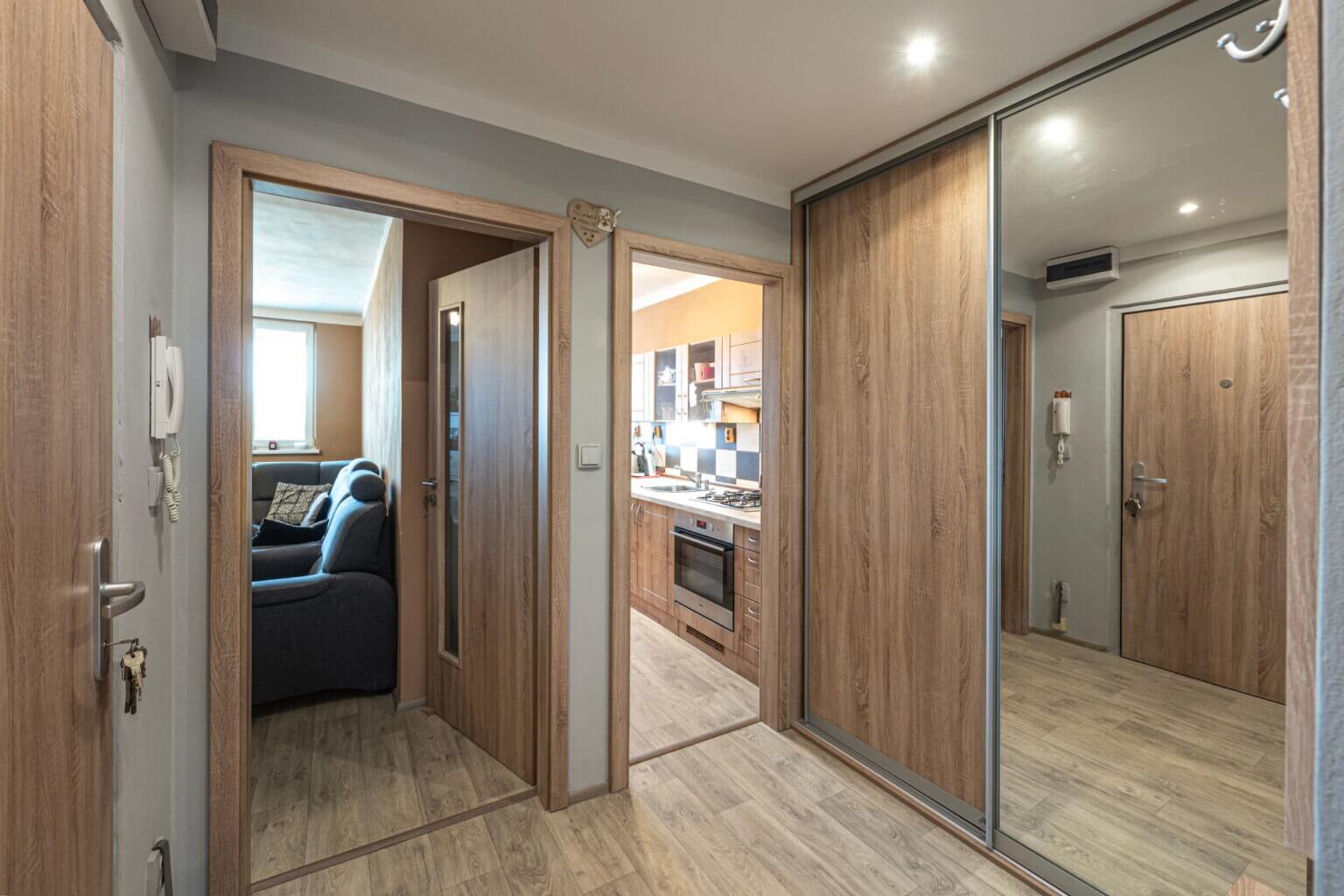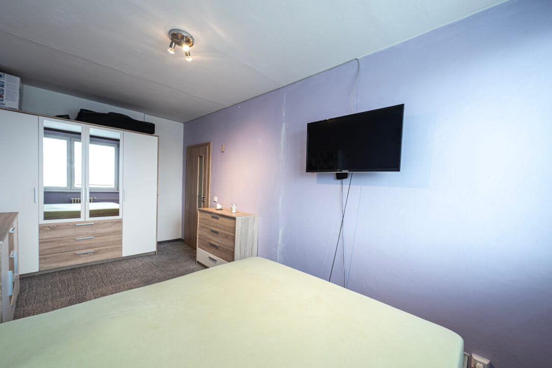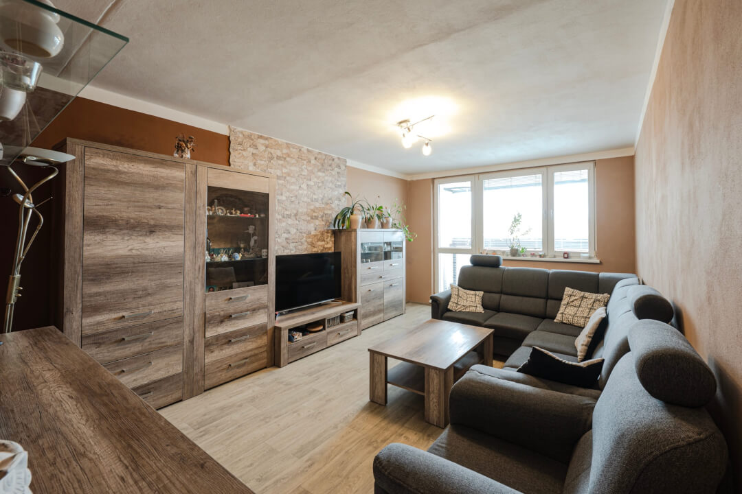 Tento zrekonstruovaný byt s výhledem do okolí a skvělou dispozicí poskytuje komfortní bydlení.