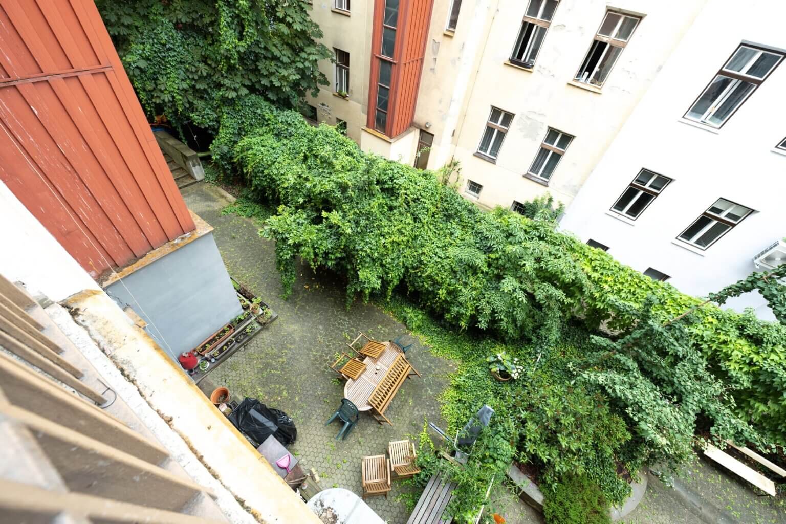 The green courtyard of the house is accessible and can be used by apartment owners.
