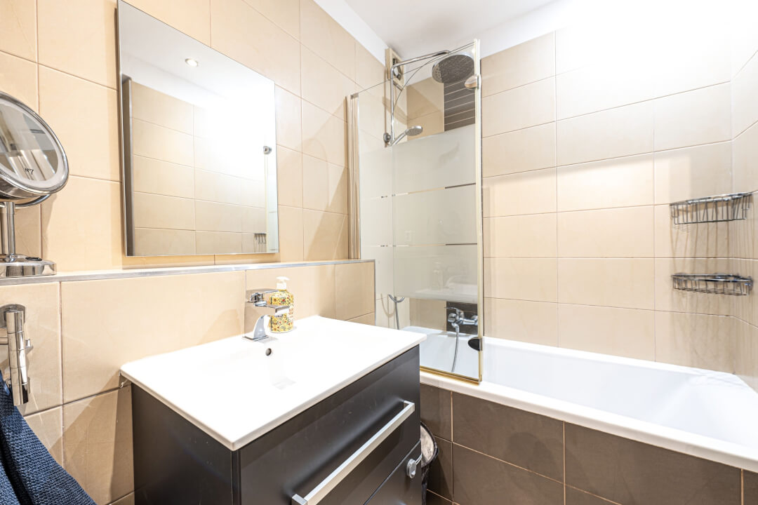 Both bedrooms have air conditioning and are oriented to a quiet green courtyard, as is the balcony. It is accessible from both bedrooms.
