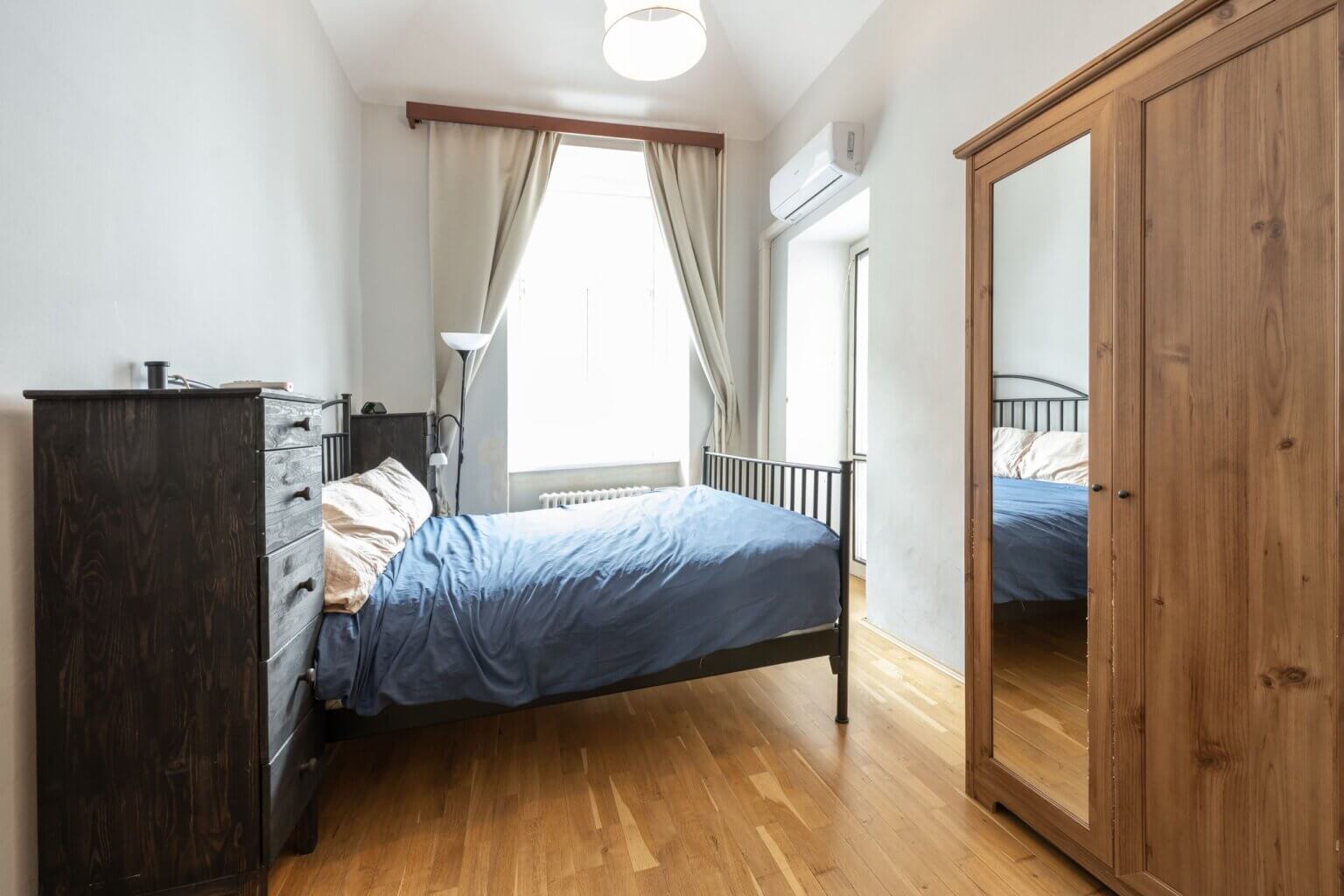The windows are wooden Euro windows double glazing, the heating is remote, the water is heated by a boiler, the bedrooms have air conditioning, the floors are wooden parquet – oak or tiles. There is also underfloor heating in the smaller bedroom.
