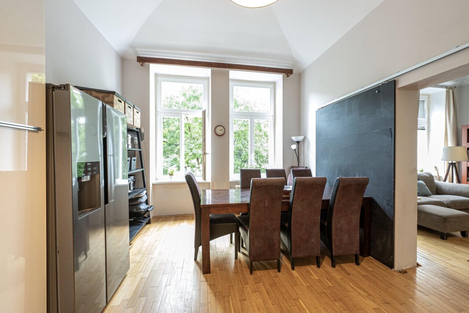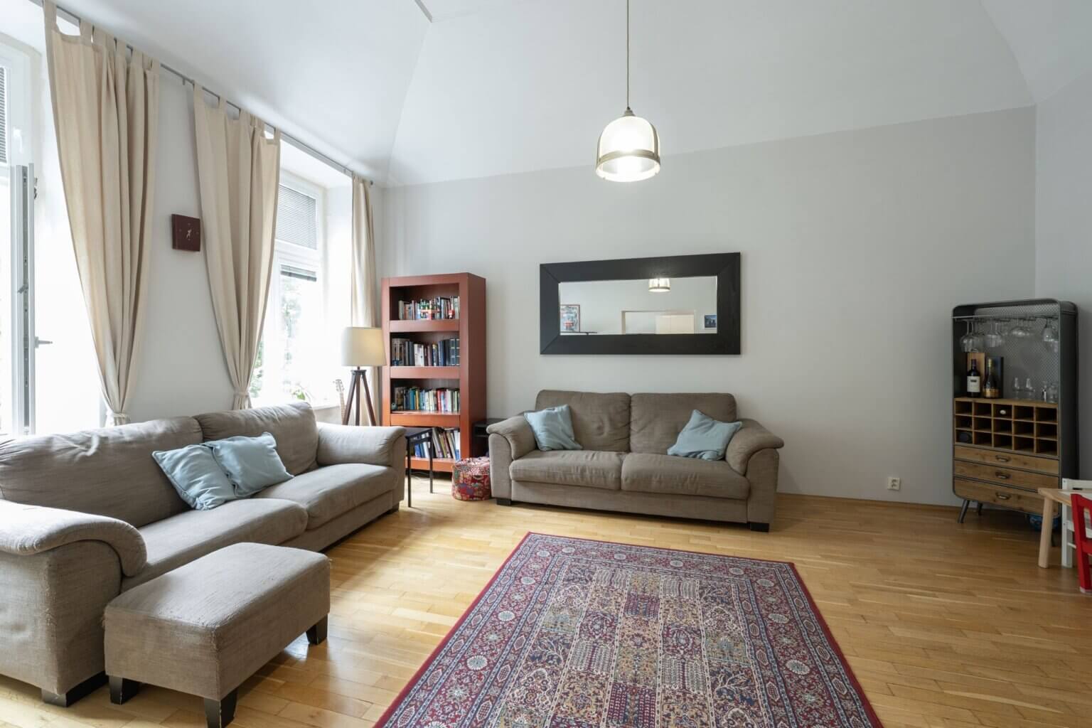 We exclusively offer you a beautiful and renovated apartment 3+kk 111 m2 with a balcony and a cellar, on the 2nd floor of a desirable location Prague 5-Smíchov, Drtinova Street.