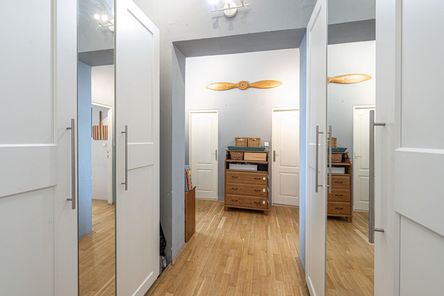 This is a great location, in a desirable part of Smíchov, within walking distance of schools (including the French Lyceum), kindergartens, OC Smíchov, Kinského zahrada, Újezd, cafes, restaurants, etc. Parking in blue zones or the possibility of renting a garage space in OC Smíchov or garages in Drtinova street.