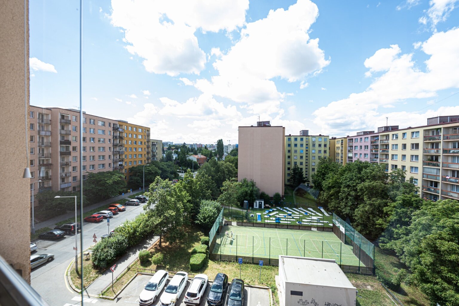 Dům z roku 1989 je po kompletní rekonstrukci fasáda, zateplení, střecha, vstup rampa pro kočárky a vozíky, nové schodiště do domu, zvonky, 2x výtah, nové schránky. Je zde kamerový systém a to i ve výtahu. Vstup do sklepů je zabezpečen přístupem přes čip. Stoupačky, el. v domě vše nové. PENB B.